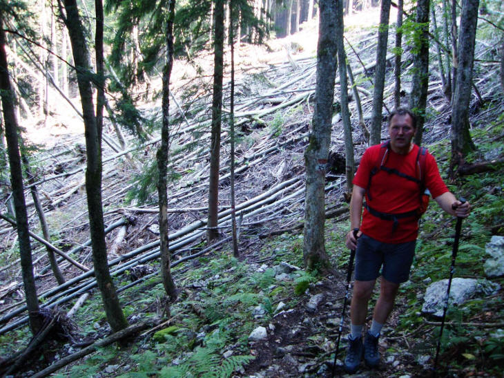 Danach ging es hinauf auf den Grat der Kremsmauer, von aus sich uns ein herrlich Rundblick bot. Beim Abstieg über die Parnstaller Alm folgten wir lange Zeit einer Lawinenschneise mit einem fürchterlichen Wirrwarr an geknickten Bäumen. Um 16 Uhr kamen wir bei Gerald daheim an, wo uns seine Petra bereits mit einer köstlichen Pizza aufwartete.