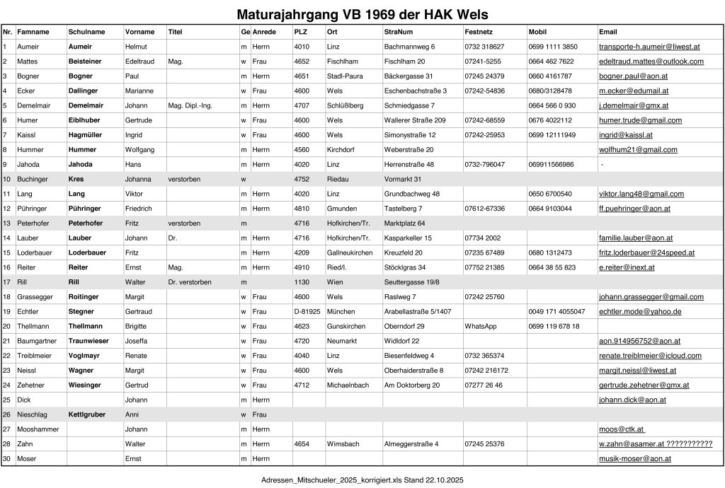 Stand nach dem Treffen 2024. Trotzdem bitte vor allem die Emailadresse und die Mobilnummer noch einmal kontrollieren.