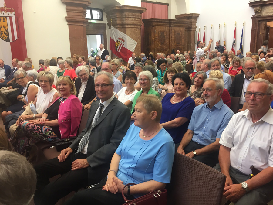 Beim Festakt im Landhaus waren 13 MitschülerInnen dabei. Zum anschließenden Klassentreffen im Promenadenhof kamen noch vier weitere dazu, sodass wir insgesamt 17 waren.